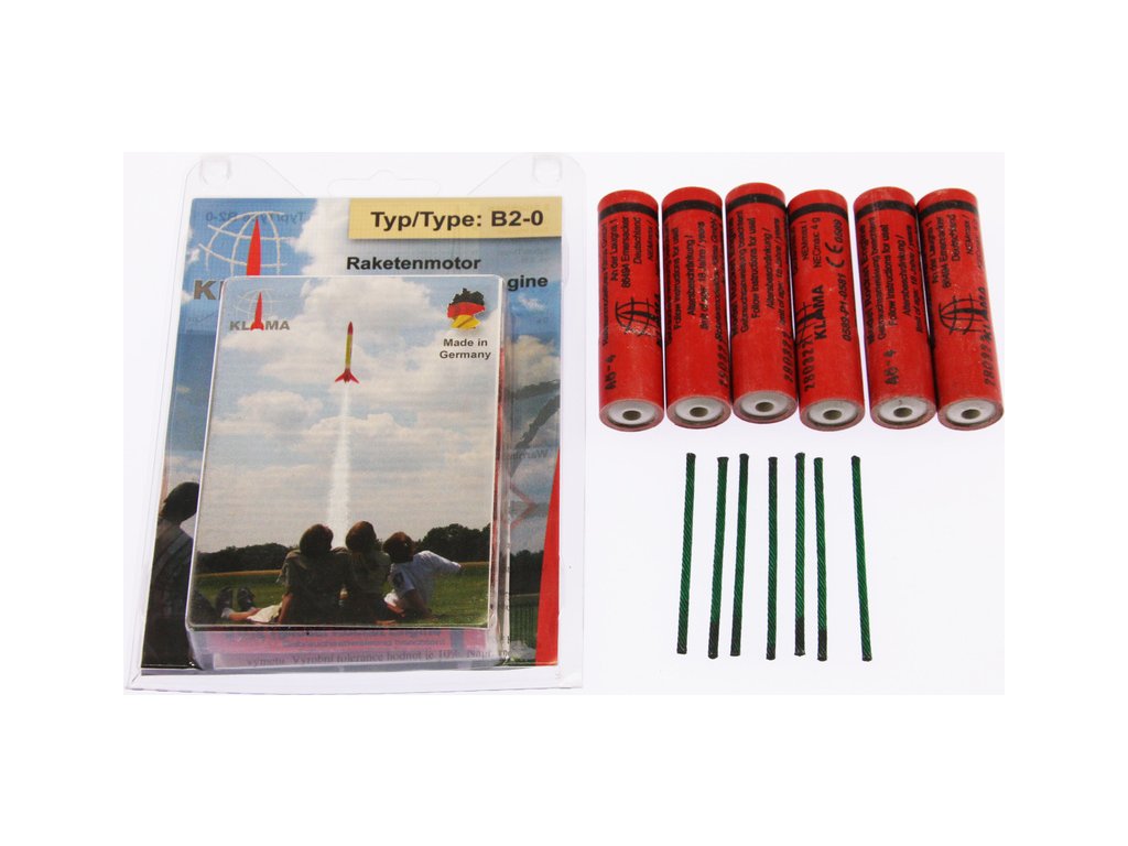 Obsahem balení je 6 raketových motorků Klima B2-0 včetně zápalnic, návod k použití.