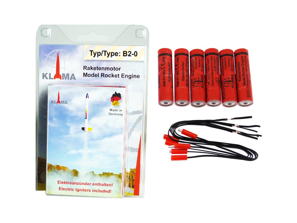 Obsahem balení je 6 raketových motorků Klima B2-0 včetně el. palníků, návod k použití.