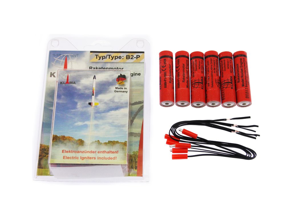 Obsahem balení je 6 raketových motorků Klima B2-P včetně zápalnic, návod k použití.