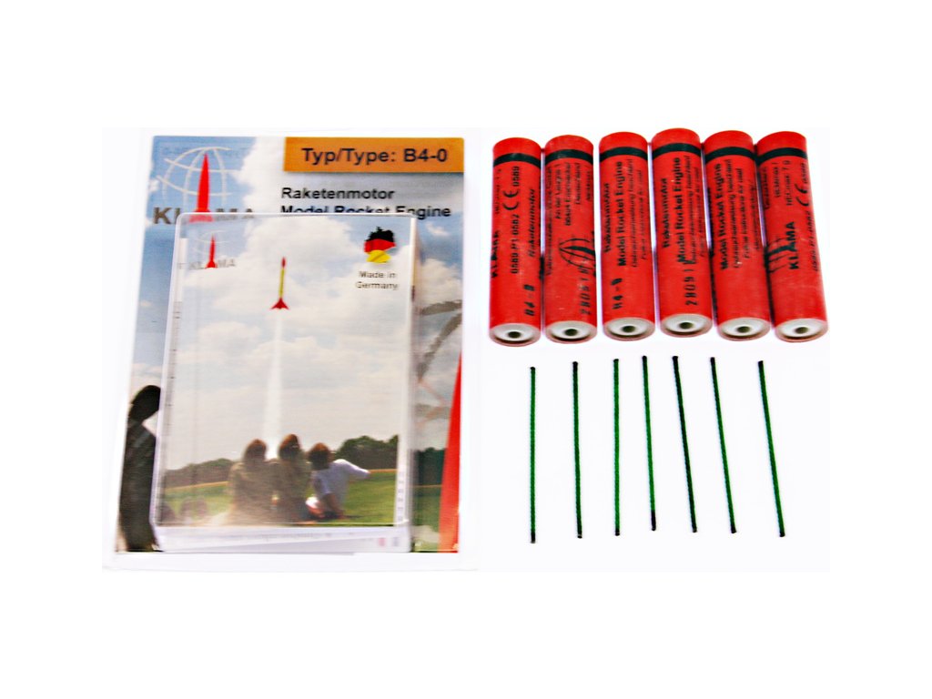 Obsahem balení je 6 raketových motorků Klima B4-0 včetně zápalnic, návod k použití.