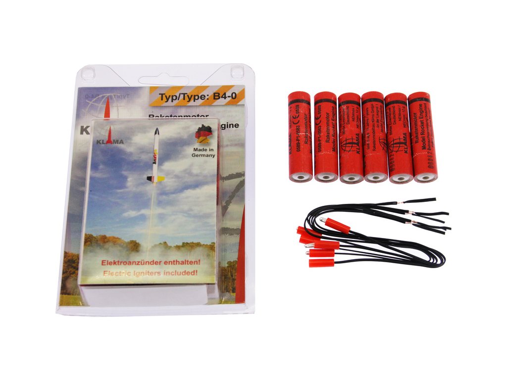 Obsahem balení je 6 raketových motorků Klima B4-0 EL včetně elektrických palníků, návod k použití.
