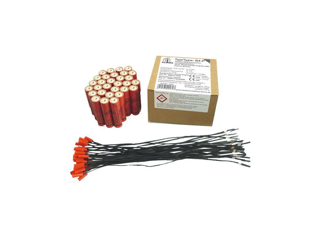 Obsahem balení je 30 raketových motorků Klima B4-P včetně el. palníků, návod k použití.