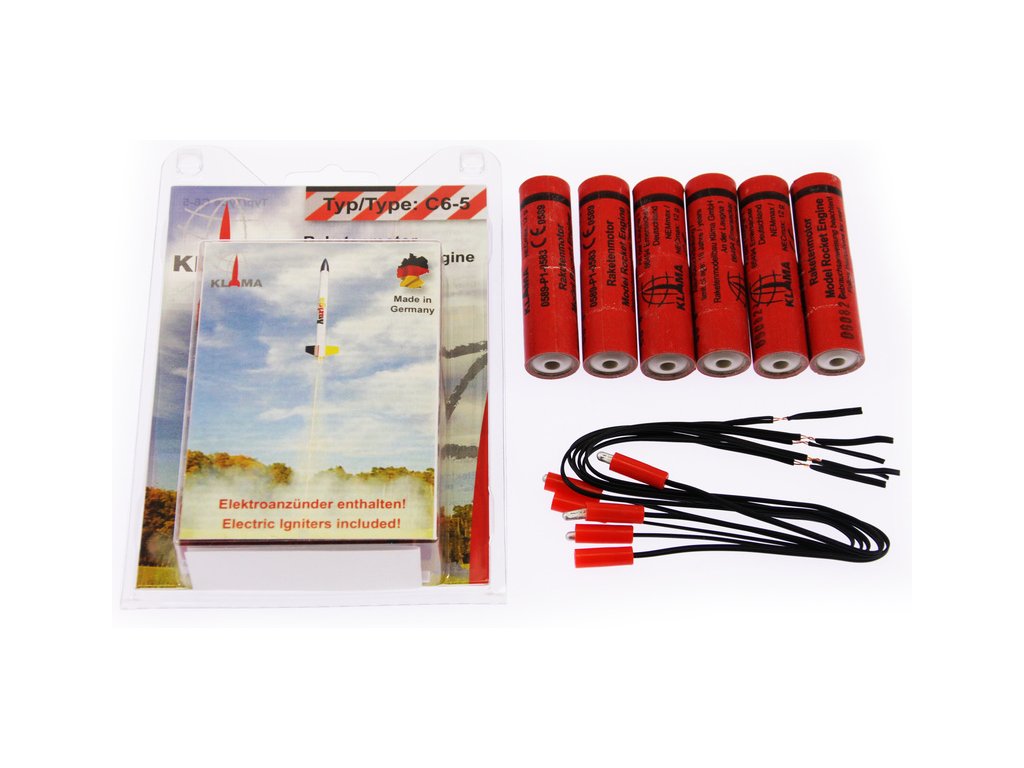 Raketový motor Klima C6-5 pro modely raket. Rozměr raketového motorku ø18 x 70 mm, impuls 10 N·s, průměrný tah E2 N, doba hoření 1.6 s, zpoždění výmetu 5 s. Hmotnost motorku 21.2 g, hmotnost náplně 10.2 g. Maximální doporučená hmotnost modelu rakety je 150 g.