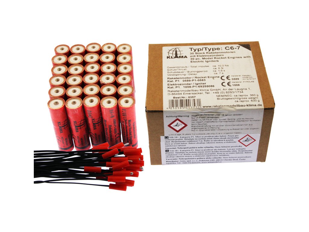 Obsahem balení je 30 ks raketových motorků Klima C6-7 včetně el. palníků, návod k použití.