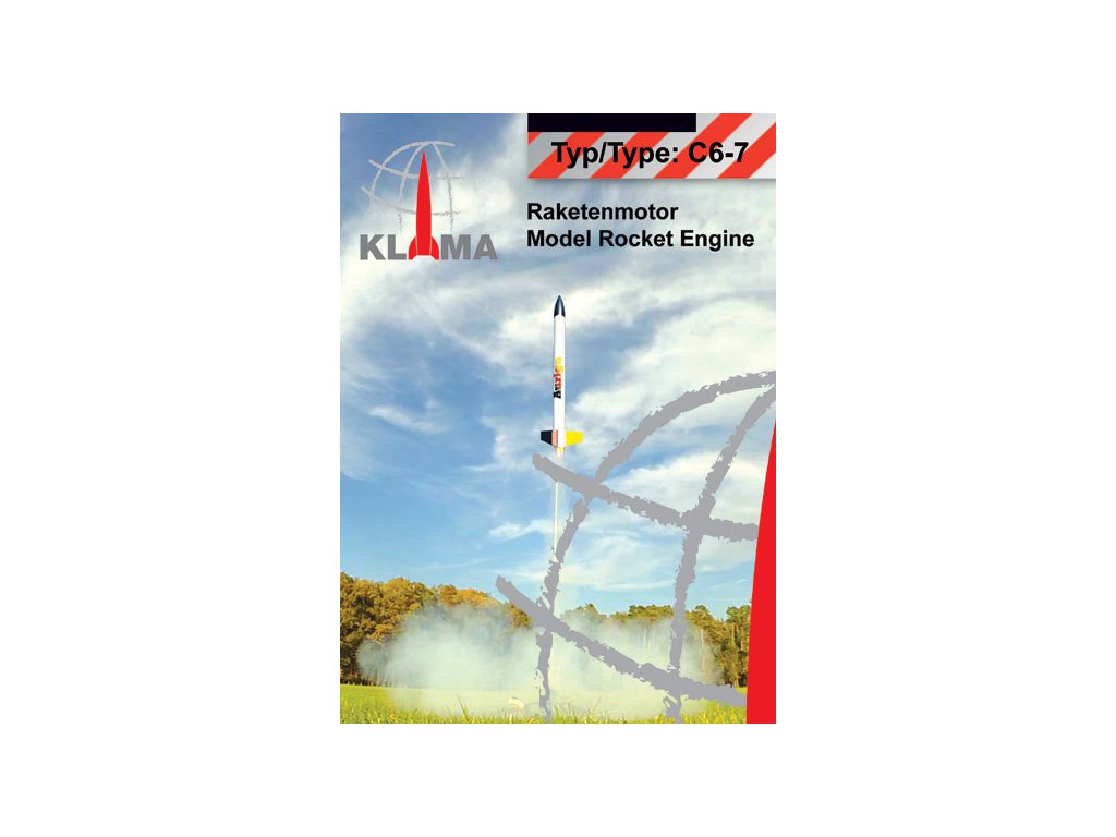 Raketový motor Klima C6-7 pro modely raket. Rozměr raketového motorku ø18 x 70 mm, impuls 10 N·s, průměrný tah E2 N, doba hoření 1.6 s, zpoždění výmetu 7 s. Hmotnost motorku 22 g, hmotnost náplně 11 g. Maximální doporučená hmotnost modelu rakety je 140 g.