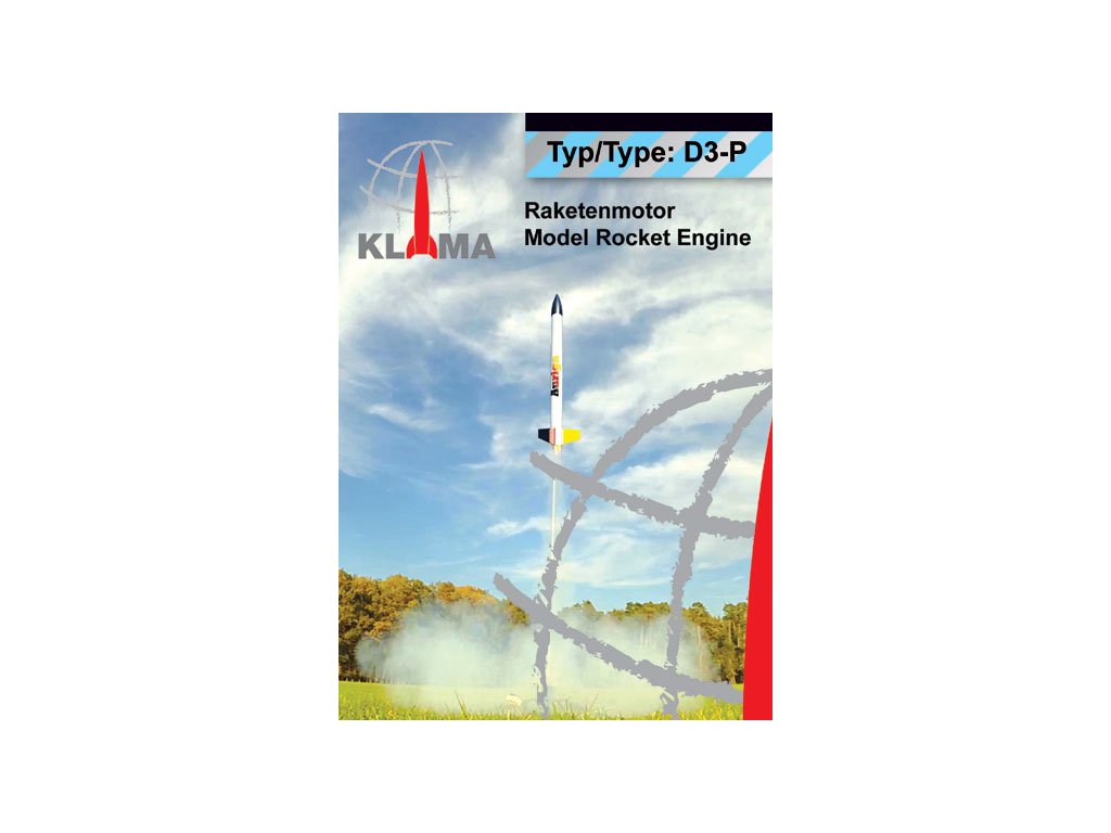 Raketový motor Klima D3-P pro modely raket. Rozměr raketového motorku ø18 x 70 mm, impuls 19 N·s, průměrný tah E2 N, doba hoření 6 s, zpoždění výmetu Bez výmetu s. Hmotnost motorku 27.7 g, hmotnost náplně 16.7 g. Maximální doporučená hmotnost modelu rakety je 200 g.