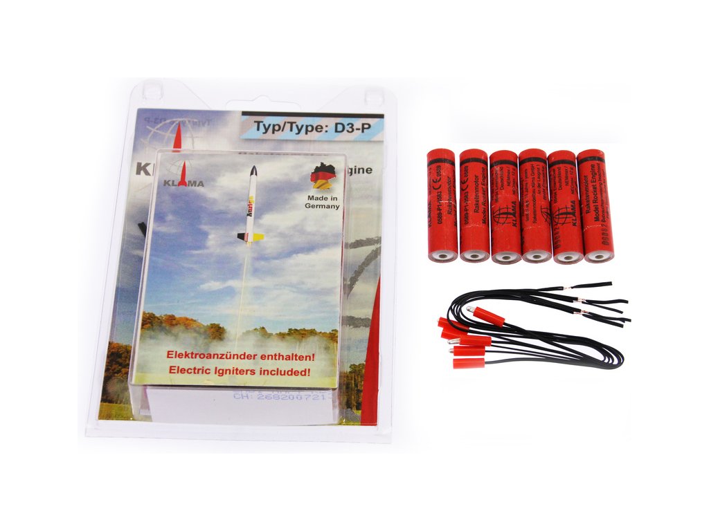 Obsahem balení je 6 raketových motorků Klima D3-P EL včetně elektrických palníků, návod k použití.