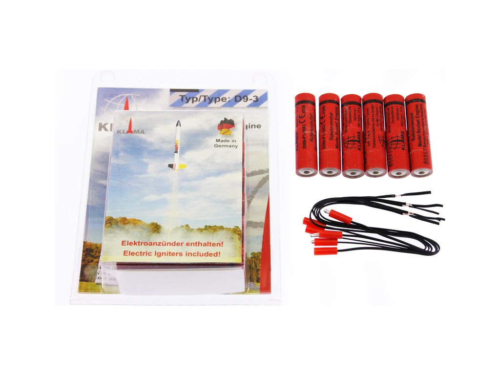 Obsahem balení je 6 raketových motorků Klima D9-3 EL včetně el. palníků, návod k použití.