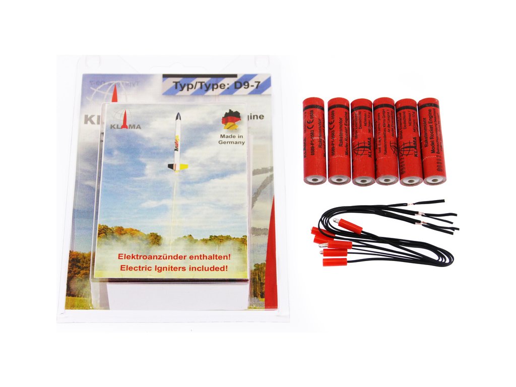 Obsahem balení je 6 raketových motorků Klima D9-7 EL včetně el. palníků, návod k použití.