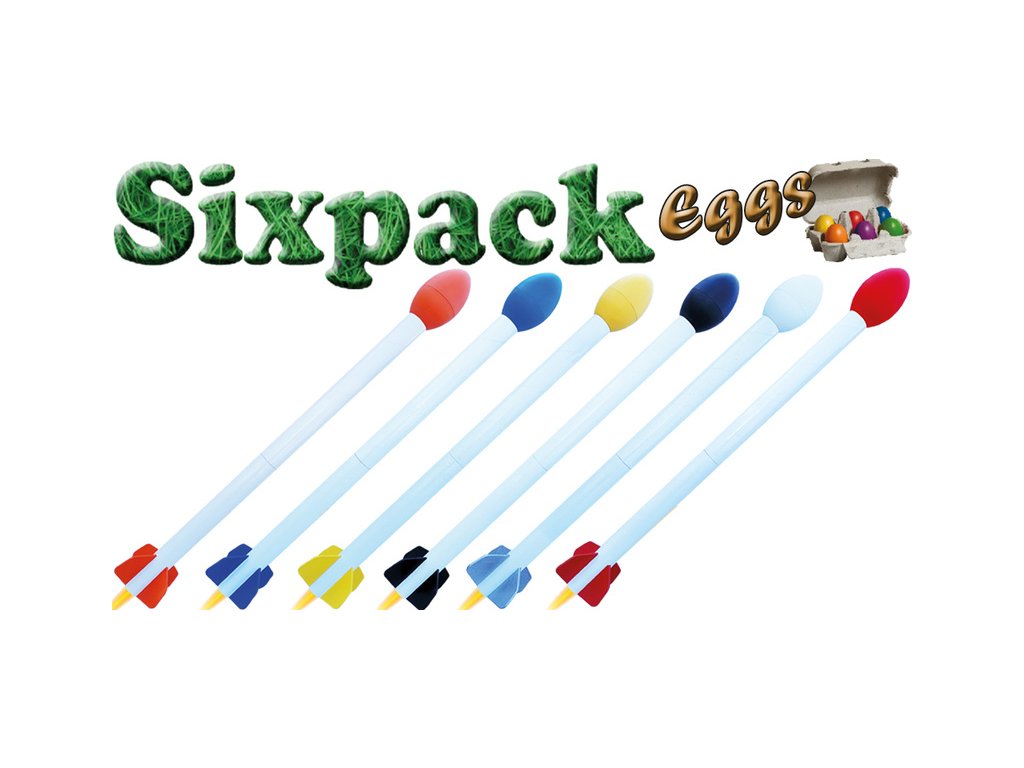 Model Klima Sixpack Classic Eggs Kit spadá do kategorie raket s užitečným zatížením (vajíčko) a je na raketové motory řady C6-5 - D9-7. Sixpack je sada stavebnic 6 velkých raket. Létají do výšky až 280m, jsou dlouhé 690mm. K zemi se snesou na barevném padáku.