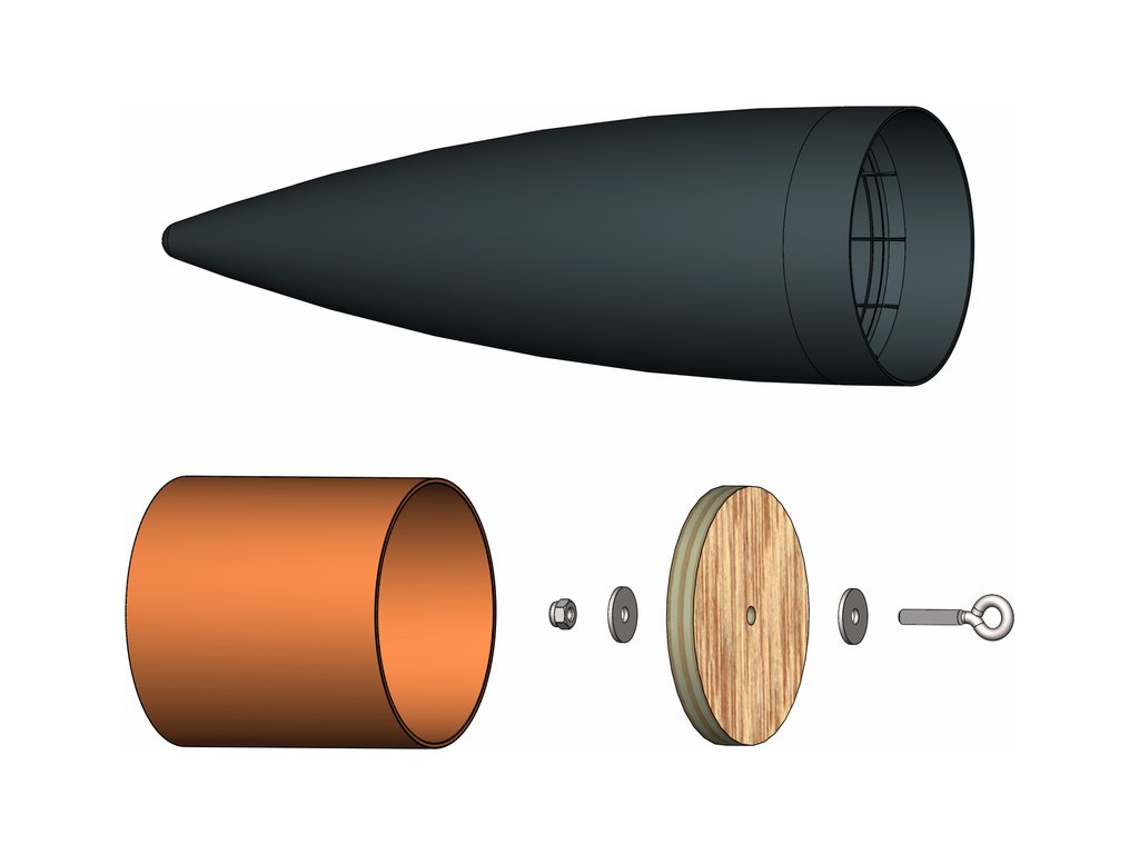 Klima Špice kompletní 75 mm černá je stavebnice velké hlavice rakety, která sestává z rázu-vzdorného výlisku ABS, spojky s kroužkem, očka se šroubem a matice s podložkami. Pro sestavení je doporučeno 5-min. lepidlo Epoxy. Pro trubku s vnitř. průměrem 72,6 mm, vnější prům. 75 mm, délka 230 mm, hmotnost 100 g.