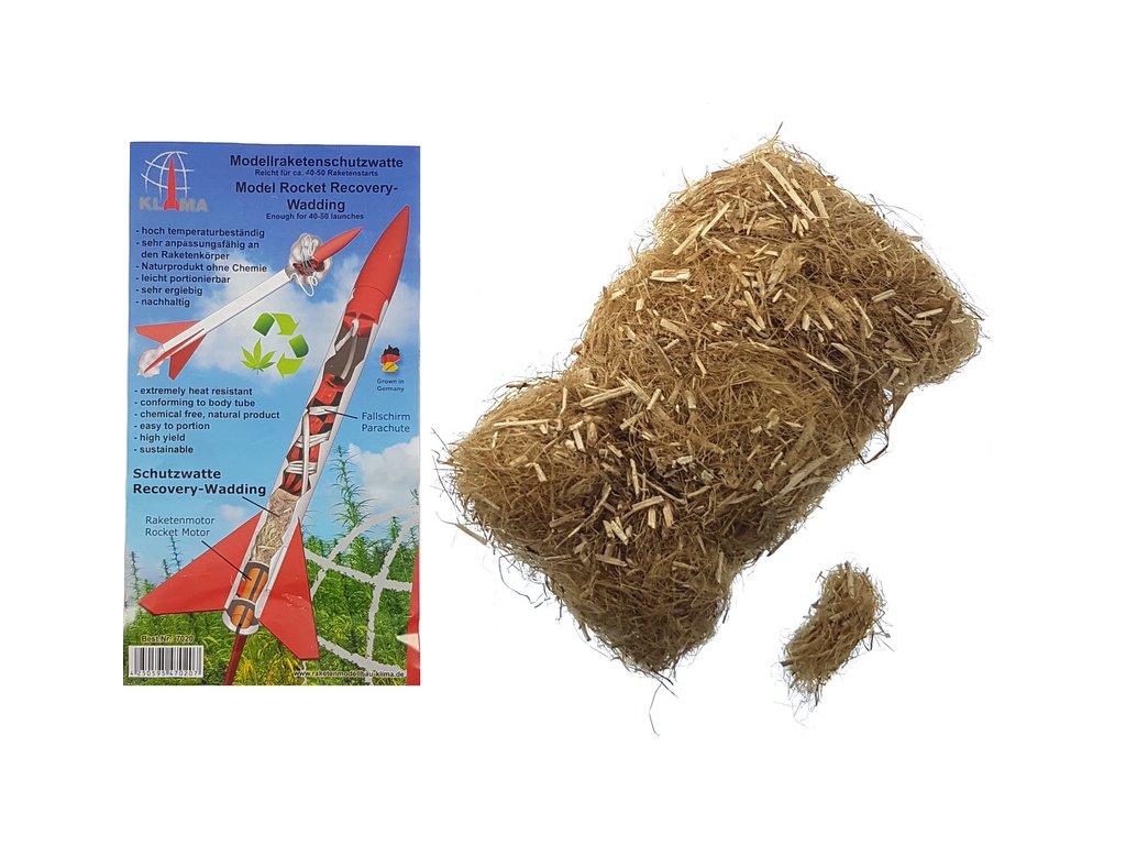 Ucpávka výmetu je 100% biologicky odbouratelná a zcela bez chemických přísad. Je vyrobena v Německu a splňuje třídu požární ochrany B1! Balení postačuje pro přibližně 40 až 50 letů rakety (v závislosti na průměru trubice).