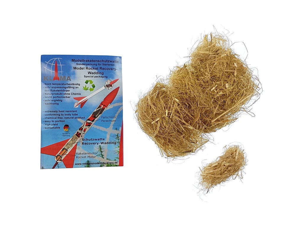Ucpávka výmetu je 100% biologicky odbouratelná a zcela bez chemických přísad. Je vyrobena v Německu a splňuje třídu požární ochrany B1! Balení postačuje pro přibližně 8 až 10 letů rakety (v závislosti na průměru trubice).