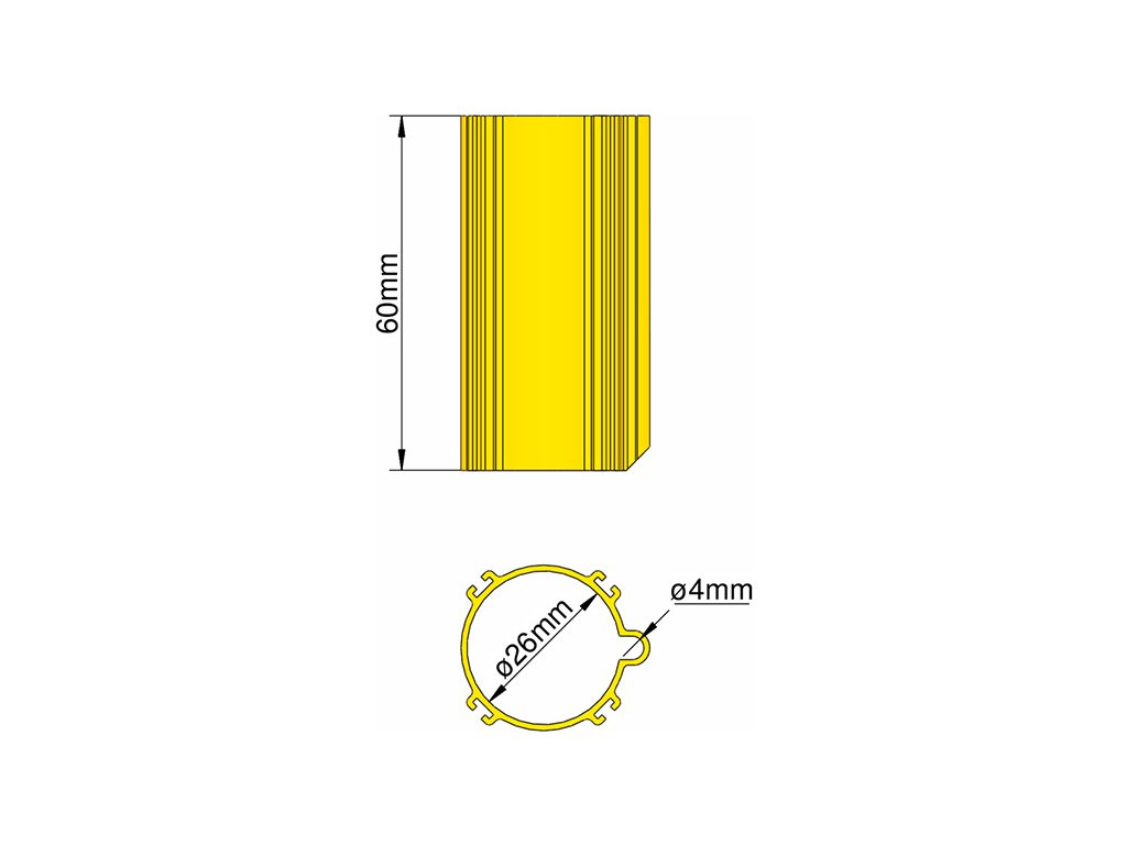 Klima Základna pro trubky o průměru 26 mm se 4-stabilizátory, žlutá barva. Výška základny 60 mm. Lehký a odolný plast. Vedení pro startovací tyč 4 mm.