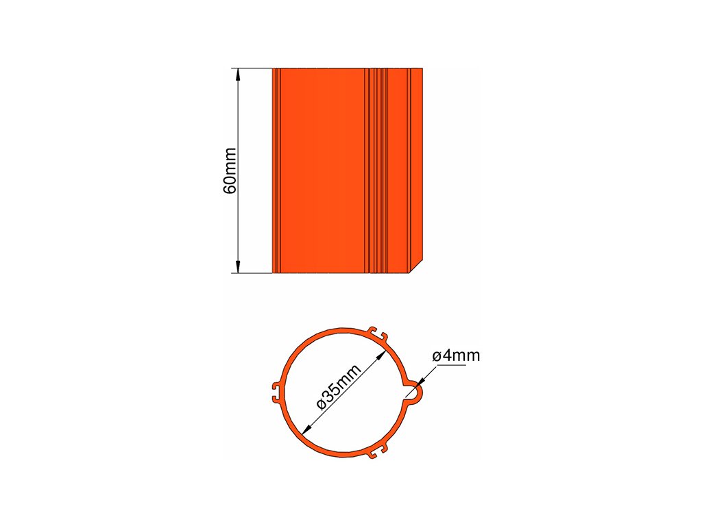 Klima Základna pro trubky o průměru 35 mm s držáky pro 3-stabilizátory, oranžová barva. Výška základny 60 mm. Lehký a odolný plast. Vedení pro startovací tyč 4 mm.