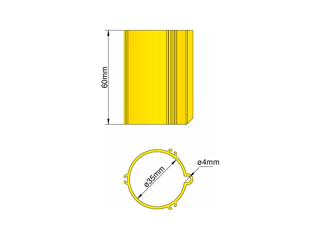 Klima Základna pro trubky o průměru 35 mm s držáky pro 3-stabilizátory, žlutá barva. Výška základny 60 mm. Lehký a odolný plast. Vedení pro startovací tyč 4 mm.
