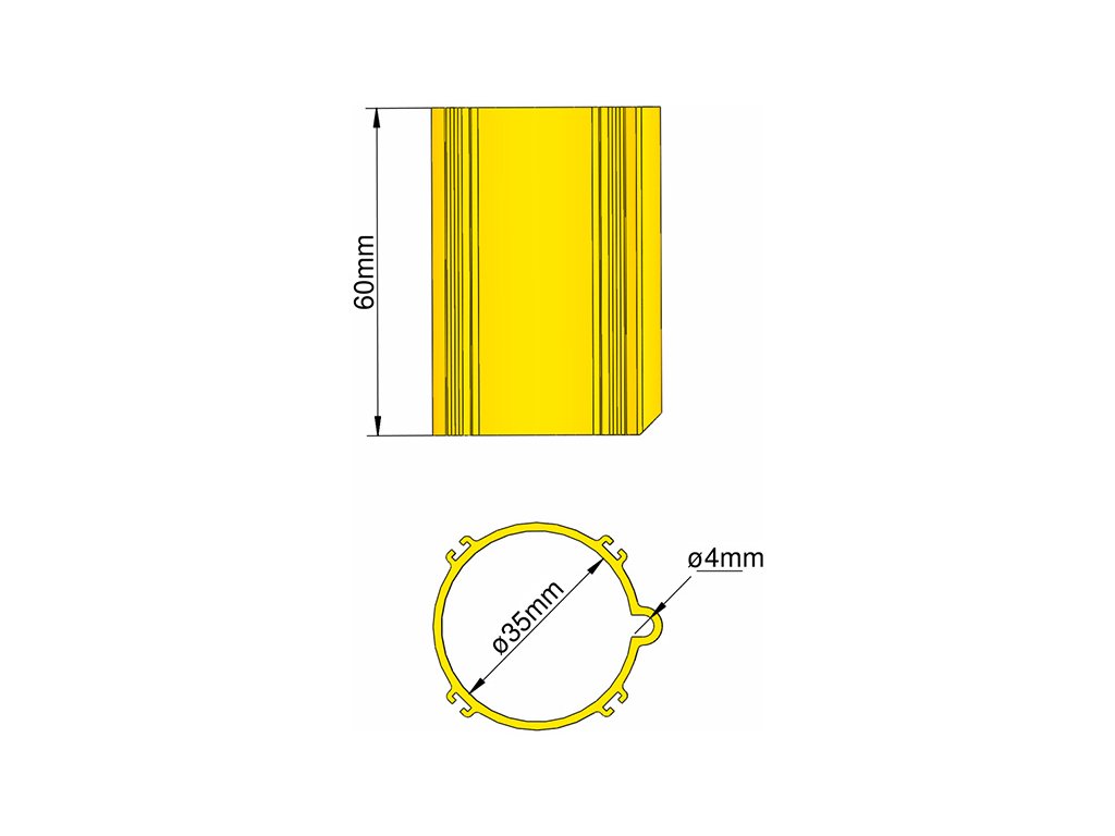 Klima Základna pro trubky o průměru 35 mm s držáky pro 4-stabilizátory, žlutá barva. Výška základny 60 mm. Lehký a odolný plast. Vedení pro startovací tyč 4 mm.