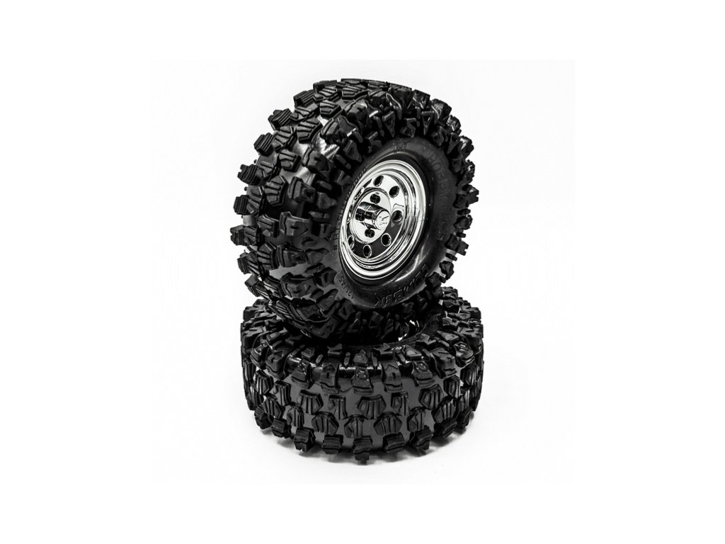Kompletní CRAWLER 1/10 gumy "CLIMBER", chromový disk, 2 ks.