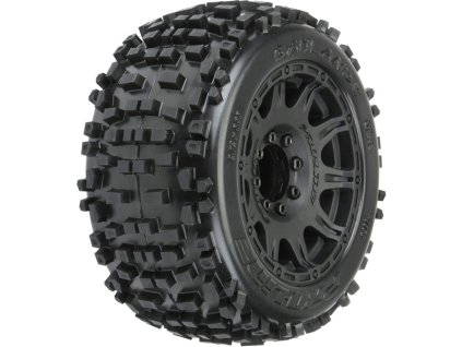 Kompletní kola Pro-Line pro RC modely aut 1:8. Rozměr ⌀149x72 mm. Disk Raid má černou barvu. Pneumatiky Badlands 3.8" MT, tvrdost směsi M2 (střední). Unašeč je šestihran 17 mm.