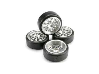 Kompletní přední i zadní kola pro RC modely auta Traxxas 4-Tec 2.0. Disky Split-spoke Černý chrom s pneumatikami Drift (v balení 2ks přední+ 2ks zadní). Rozměr disku ø53x26/30...