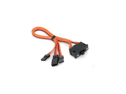 Spektrum vypínač s nabíjecí odbočkou se zapojí mezi napájecí baterii a přijímač. Umístí se na bok trupu pomocí dvou šroubů.