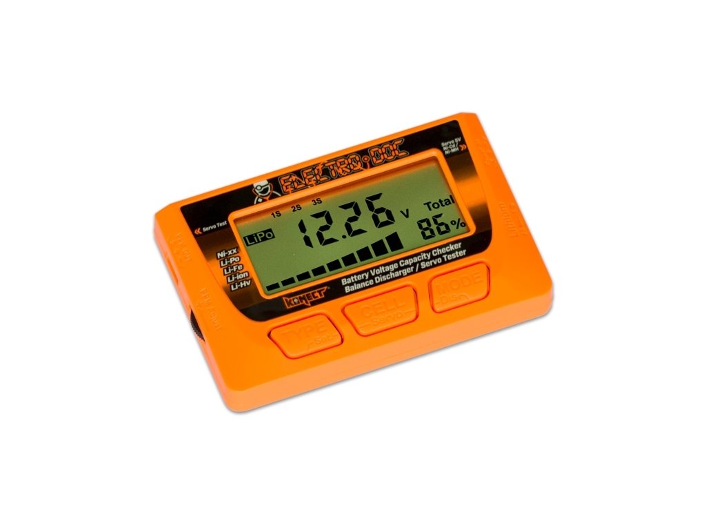 Tester LiPo akumulátorů 1-8S je multifunkční měřící přístroj umožňující testování stavu akumulátorových sad většiny hlavních modelářských typů: Li-Po, Li-ion, LiFe, LiHV, NiCd a NiMH. Dále umožňuje vybíjení s balancováním a autonomní balancování lithiových sad pro vyrovnání napětí jednotlivých článků na s tejnou úroveň. V režimu servotesteru jej lze použít pro testování serv a elektronických regulátorů otáček.
