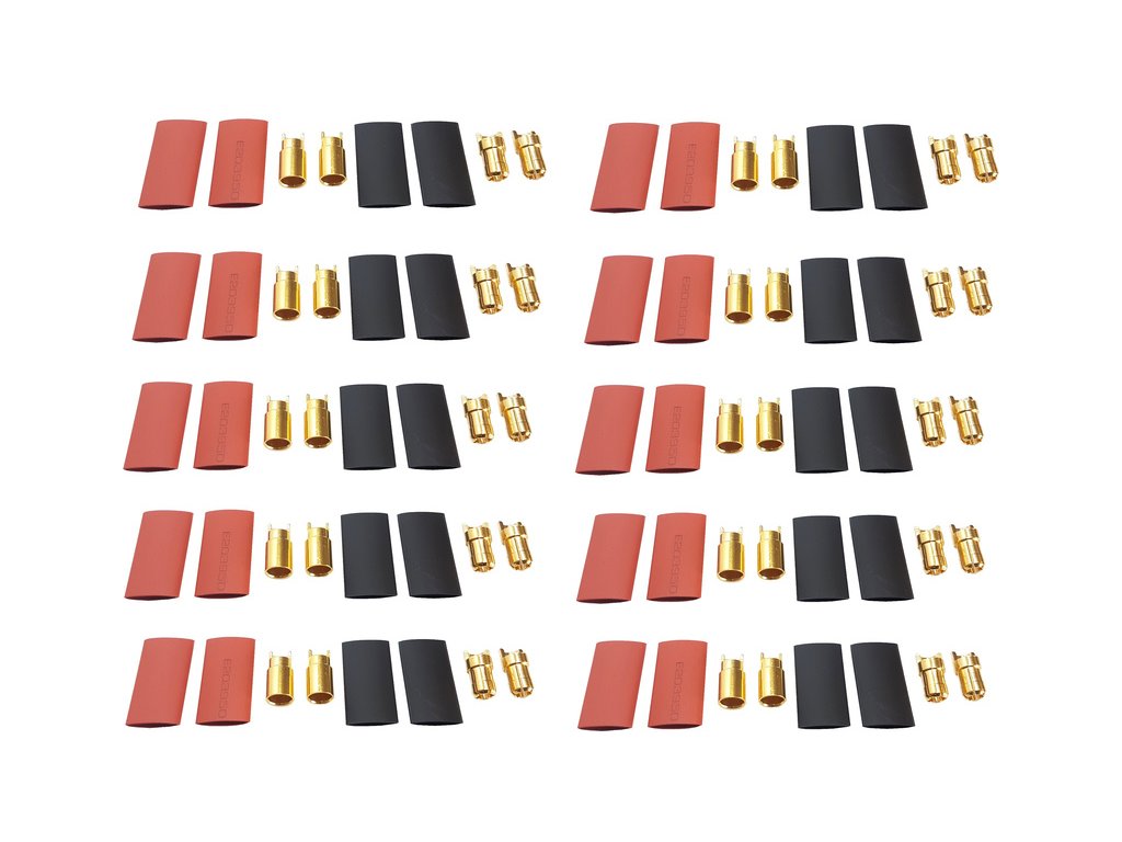 Konektor zlacený kolík a dutinka 6mm (10 párů) včetně smršťovacích bužírek.