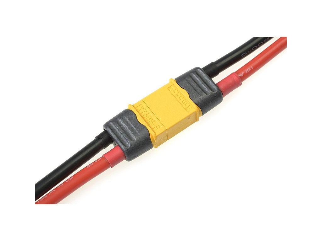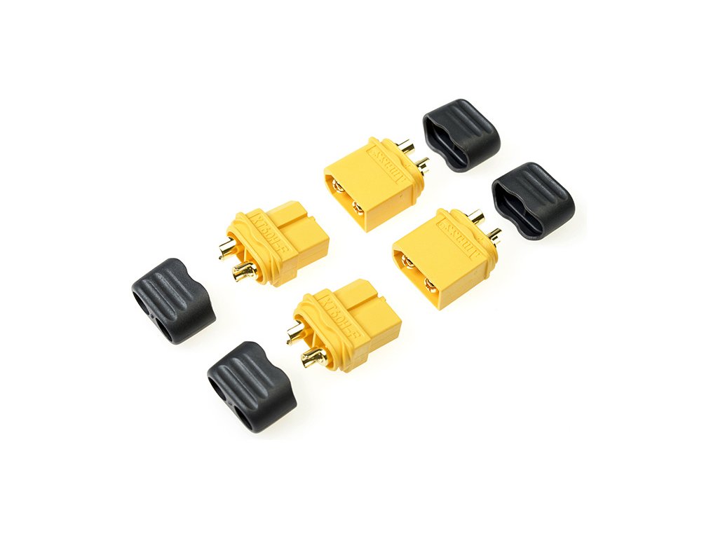 Zlacený konektor XT-60 baterie a přístroj (samice a samec) s plastovým krytem. Balení obsahuje 2 páry.