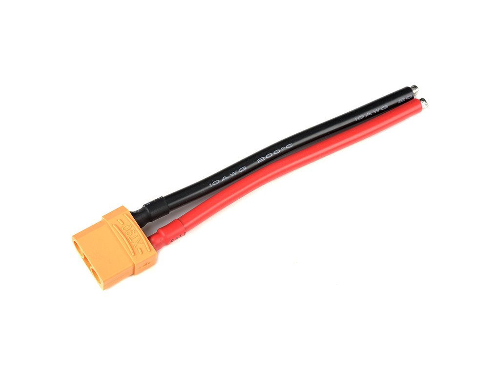 Konektor zlacený XT-90 baterie (samice), s kabelem 10AWG, délka 12cm.