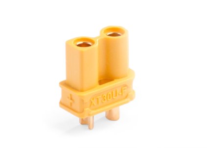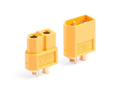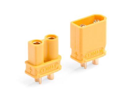 Dvoukolíkový silový konektor se zlacenými kontakty se zatížitelností max. 30 A. Pro kabely o průřezu max. 0,8 mm2 (18AWG). Přechodový odpor 0,65 mOhm, max. 500 V. Balení 1 pár.