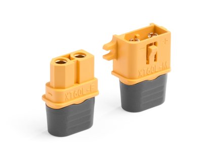 Dvoukolíkový silový konektor se 3,5 mm zlacenými kontakty se sníženým přechodovým odporem a zatížitelností max. 60 A s plastovými kryty kabelů. Pro kabely o průřezu max. 3,3 mm2...