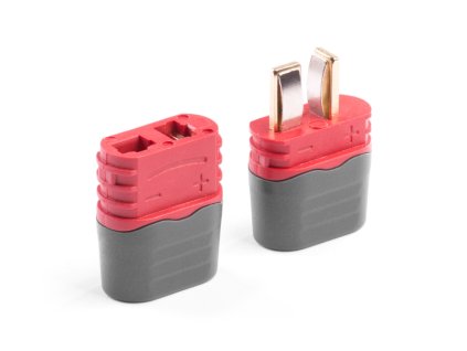 Dvoukolíkový silový konektor s plochými zlacenými kontakty se zatížitelností max. 50 A (dlohodobě 25A) s drážkovaným tělem pro pevnější uchopení. Pro kabely o průřezu max. 3,3...