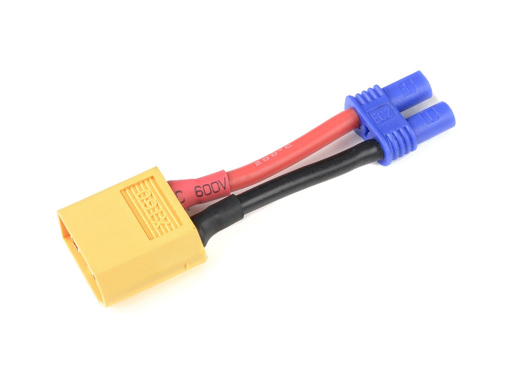 Konverzní kabel s konektory EC2 baterie (samice) - XT-60 přístroj (samec), kabel 14AWG.