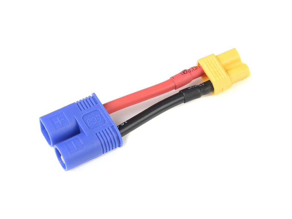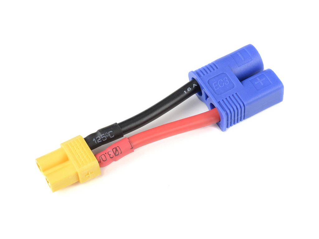 Konverzní kabel s konektory EC3 přístroj (samec) - XT-30 baterie (samice), kabel 14AWG.
