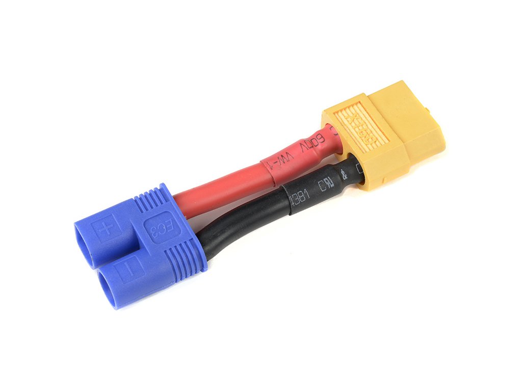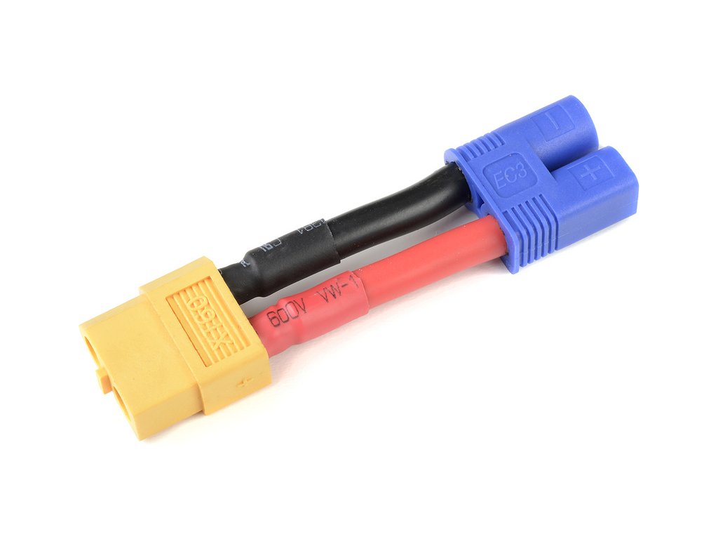 Konverzní kabel s konektory EC3 přístroj (samec) - XT-60 baterie (samice), kabel 12AWG.