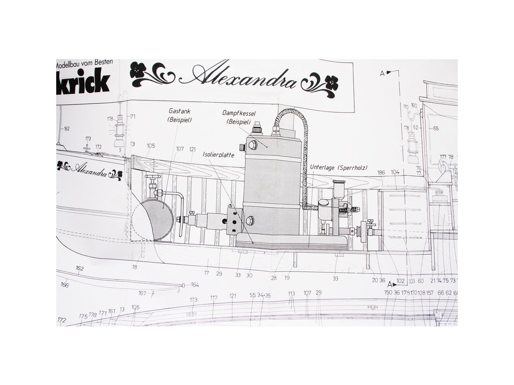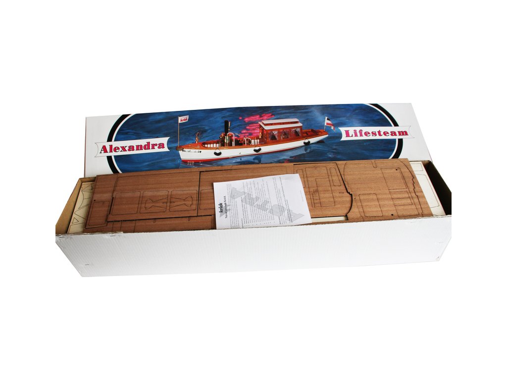 Stavebnice modelu člunu na parní pohon Alexandra v měřítku 1:10. Tento typ lodí byl využíván na počátku minulého století. Alexandra je ideální model pro vstup do světa páry. Konstrukci tvoří laserem řezané dřevěné díly a hotový ABS trup. Stavba nevyžaduje žádné zvláštní znalosti. Stavebnice je bez parního stroje.