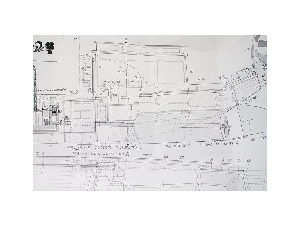 Set obsahuje kompletní sadu výkresové dokumentace modelu v měřítku 1:1 s obrázky jednotlivých detailů. Na výkrese jsou v měřítku nakresleny montážní sestavy, jejich kompletace a to včetně montáže parního stroje. Vícejazyčný postup stavby rámcově upravuje logické sestavení jednotlivých komponentů.
