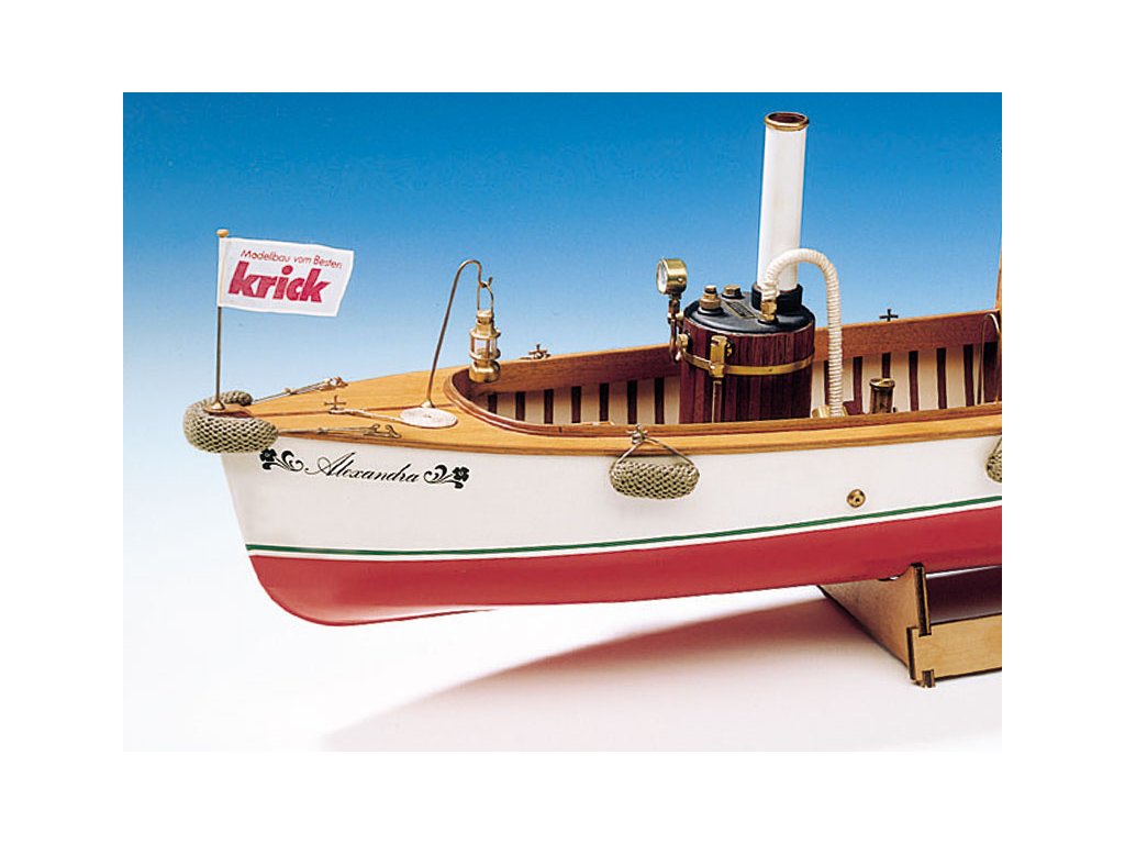 Stavebnice modelu člunu na parní pohon Krick Alexandra v měřítku 1:10. Tento typ lodí byl využíván na počátku minulého století. Alexandra je ideální model pro vstup do světa páry. Konstrukci tvoří laserem řezané dřevěné díly a hotový ABS trup. Stavba nevyžaduje žádné zvláštní znalosti. Stavebnice je bez parního stroje.