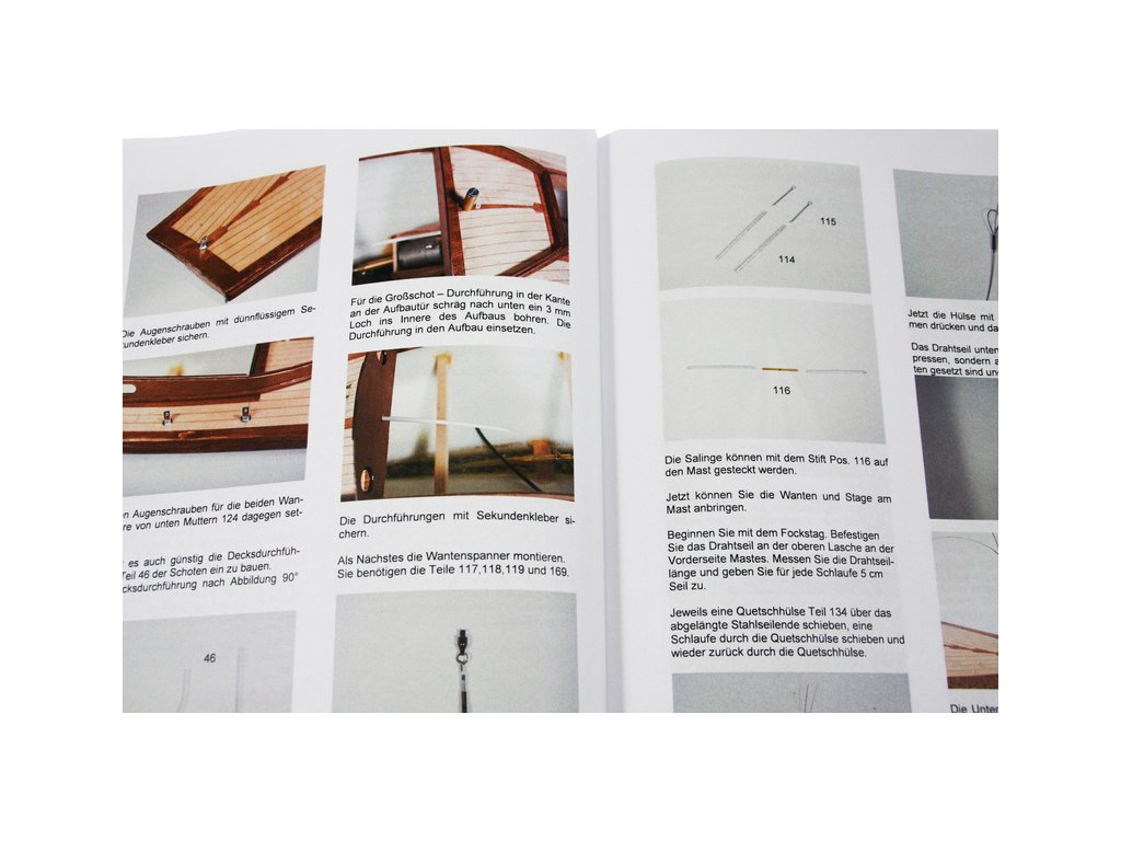 Set obsahuje kompletní sadu výkresové dokumentace modelu v měřítku 1:1 s obrázky jednotlivých detailů. Na výkrese jsou v měřítku nakresleny montážní sestavy, jejich kompletace a to včetně stěžňů a ráhen a způsob vázání lanoví. Vícejazyčný postup stavby rámcově upravuje logické sestavení jednotlivých komponentů.