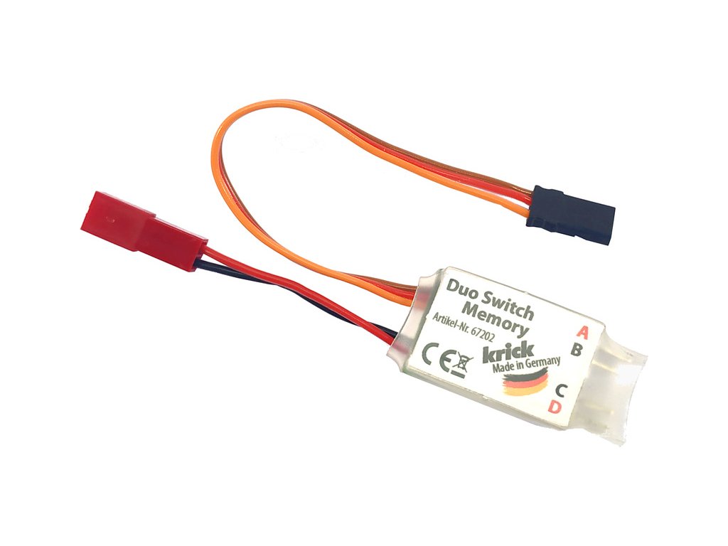 Krick elektronický duální spínač slouží pro zapínání doplňkových zařízení na lodích, jako např. osvětlení, vodní čerpadla, jeřáby, atd. Zařízení je napájeno ze samostatného zdroje. Spínač se ovládá pouze jedním kanálem s polohami -100%, 0% a +100%.