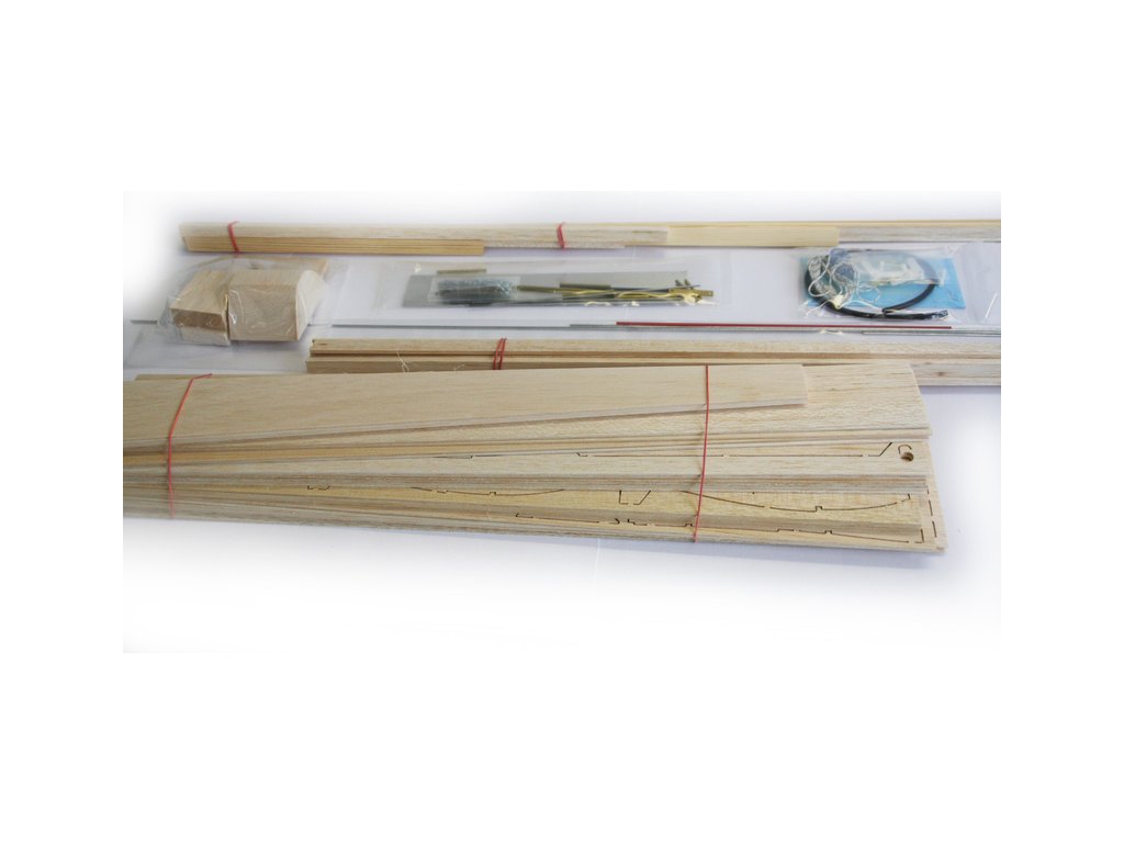 Jedná se o klasickou celodřevěnou stavebnici. Pro sestavení modelu potřebujete vhodná lepidla, základní modelářské nářadí a potahovou fólii. K potažení modelu doporučujeme použít nažehlovací fólii. V balení není elektronika, proto potřebujete dokoupit 4 ks mini serv a 4+ kanálovou RC soupravu.
