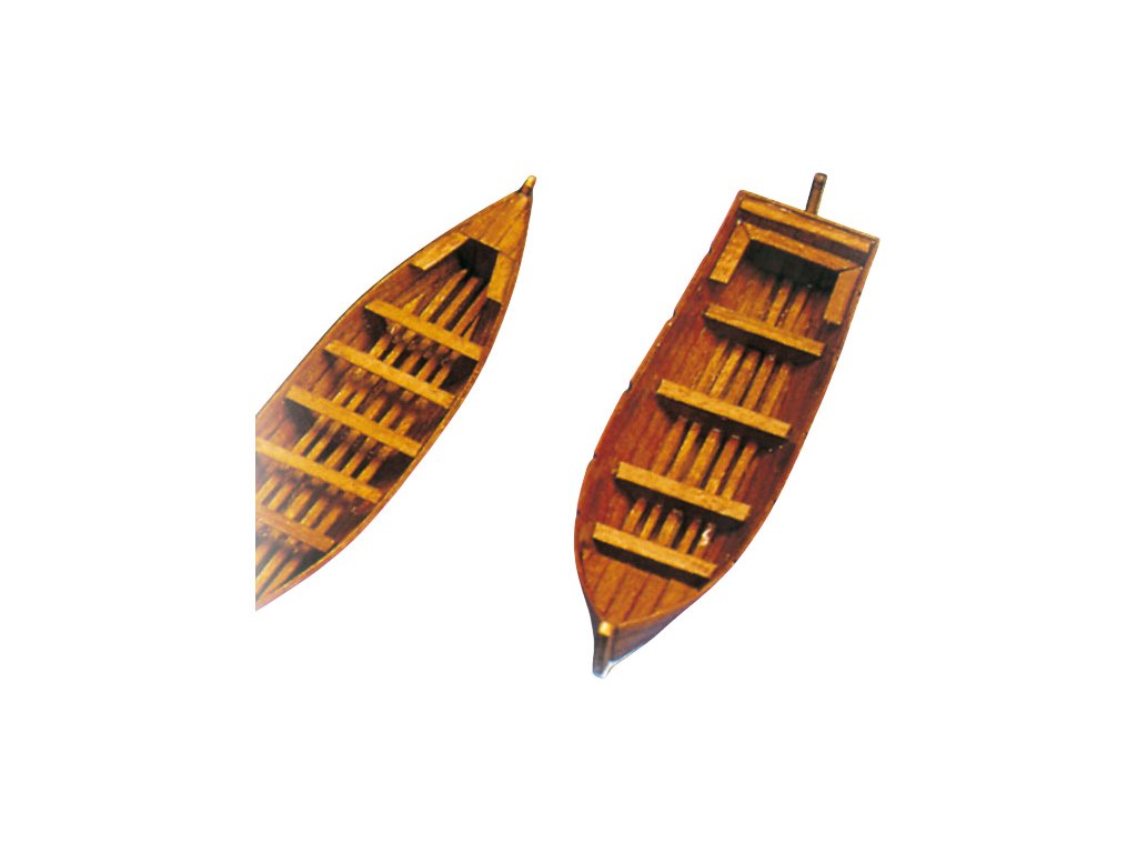 Stavebnice modelu dřevěné lodičky s kormidlem, rozměry 103x28x22mm. Jednoduchá stavebnice obsahuje přepážky vyřezané laserem z překližky, sadu lišt a stavební plány.