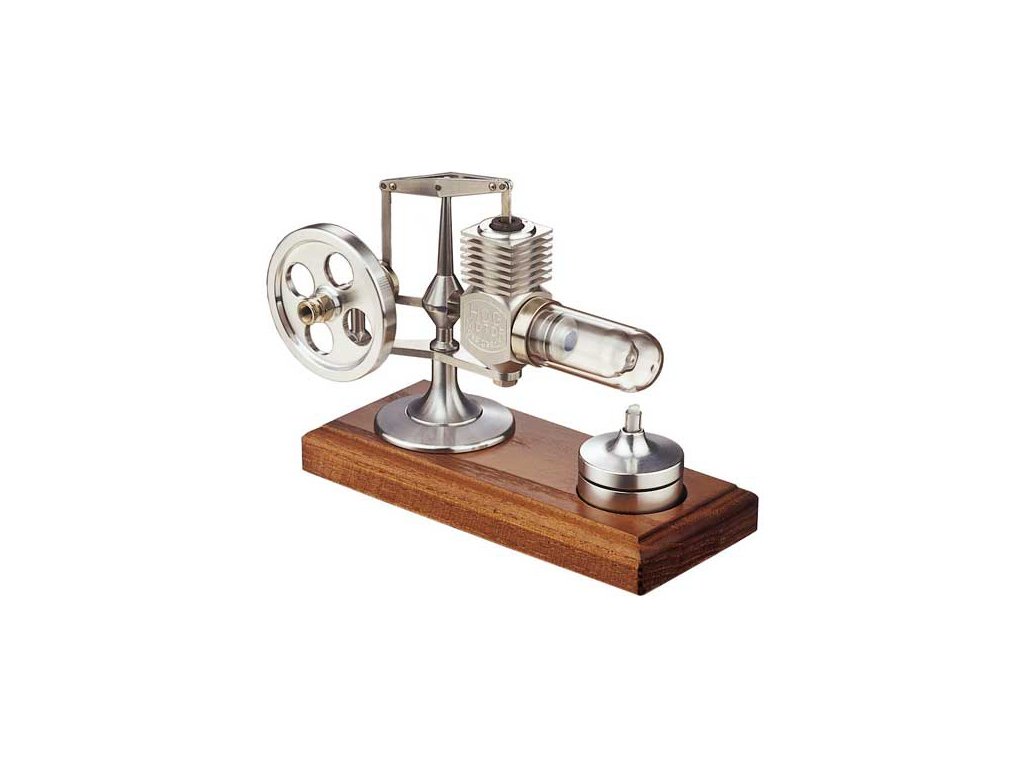 Stirlingův motor typu Beta, provedení Krick Motor Stirling hliníkový smontovaný. Píst a ložisko výtlačného pístu jsou vyrobeny ze speciální, samomazného materiálu. To znamená, že žádnou údržbu a dlouhou životnost. Palivo je denaturovaný líh, dlouhá doba provozu. Vyroben z leštěného hliníku. Délka celk. 155mm, šířka 60mm, výška 105mm.