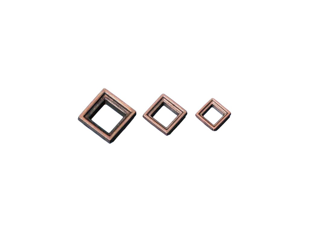 Maketové doplňky pro modely lodí Krick: kovový rám okna dělové paluby 13x13mm. Velikost vložky 13x13mm, vnější rozměry 17x17mm, vnitřní rozměry 9,5x9,5mm (10) ks).