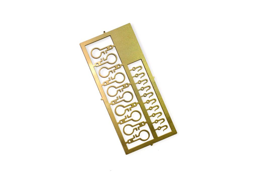 Maketové doplňky pro modely lodí Krick: Oko s hákem leptané 5mm (10ks). Průměr čepu 5mm, výška 12mm.