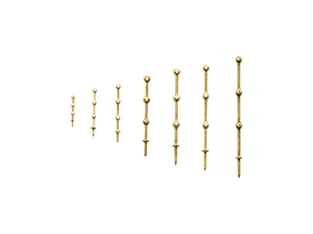 Maketové doplňky k lodím ve špičkové kvalitě Krick: Podpěra zábradlí o délce 30mm 3x otvor (10 ks v balení). Délka 30mm, Ø kuličky 2,5mm, Ø drátu 1mm.