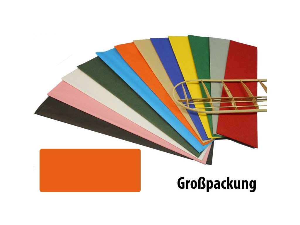 Krick potahový papír oranžový 18g/m2 51x76cm (50 ks v balení). Potahový papír Krick pro potahování modelů letadel jsou k dispozici v různých barvách.