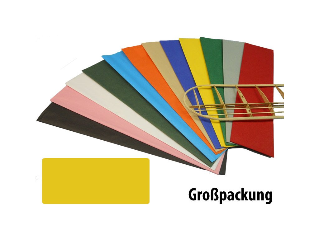 Krick potahový papír žlutý 18g/m2 51x76cm (50 ks v balení). Potahový papír Krick pro potahování modelů letadel jsou k dispozici v různých barvách.