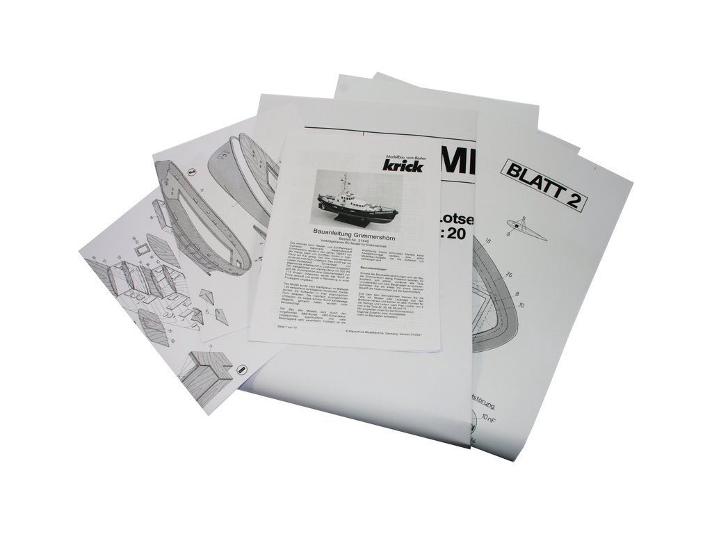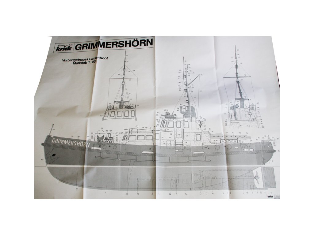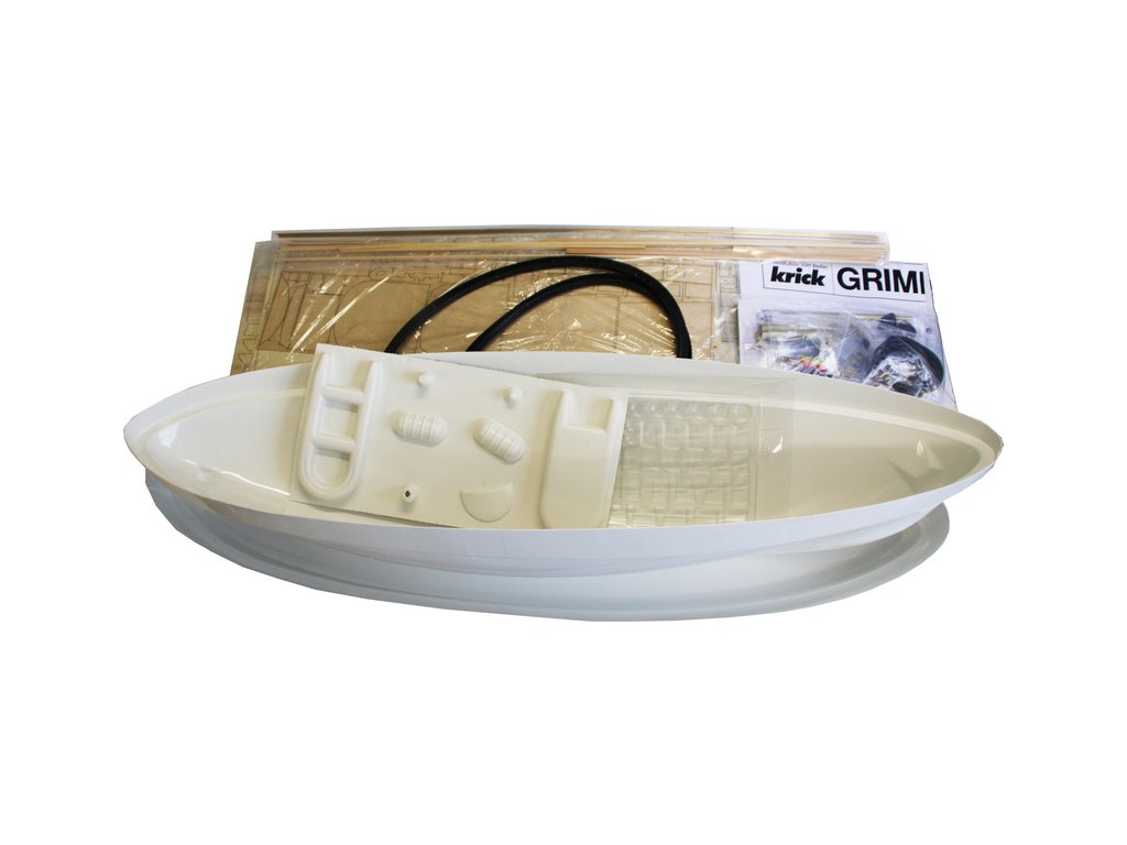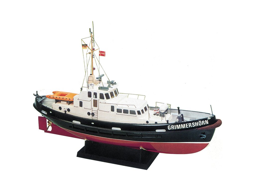 Nádherná stavebnice RC modelu lodi od firmy Krick, přístavní remorkér Grimmershörn. Model je určen pro pokročilé lodní modeláře. Obsahuje plastový trup z ABS, dřevěné díly paluby a interiéru, lodní šroub s hřídelí, maketové díly a montážní příslušenství.