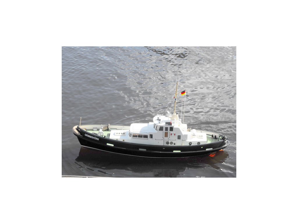 Nádherná stavebnice RC modelu lodi od firmy Krick, přístavní remorkér Grimmershörn. Model je určen pro pokročilé lodní modeláře, obsahuje plastový trup z ABS, dřevěné díly paluby a interiéru, lodní šroub s hřídelí, maketové díly a montážní příslušenství.